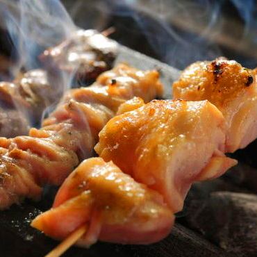 ガスなどで焼いた場合は火を強くすると表面が焦げ、火を弱くすると今度はうま味や水分が出てしまい堅くなったりするのですが、備長炭で丁寧かつ素早く焼き上げることで、炭の風味が移り、焼き鳥の味がより出て、うまみがましていきます。各種宴会・貸切に記念日に、可能な限り対応致します。ご予約お待ちしております!
